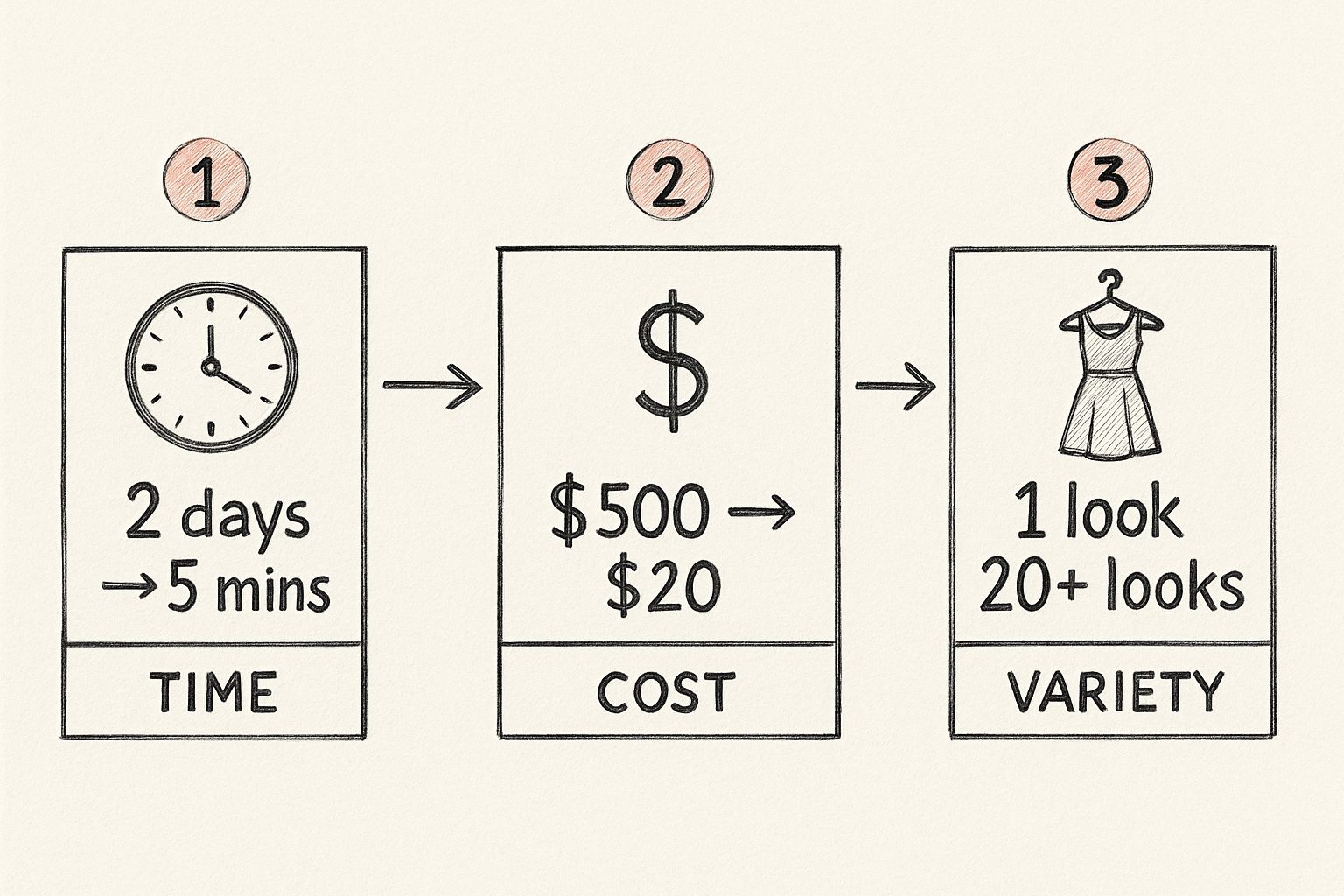 Still on the fence? Let's break down exactly how much more efficient and flexible our AI solution is compared to a traditional photoshoot.