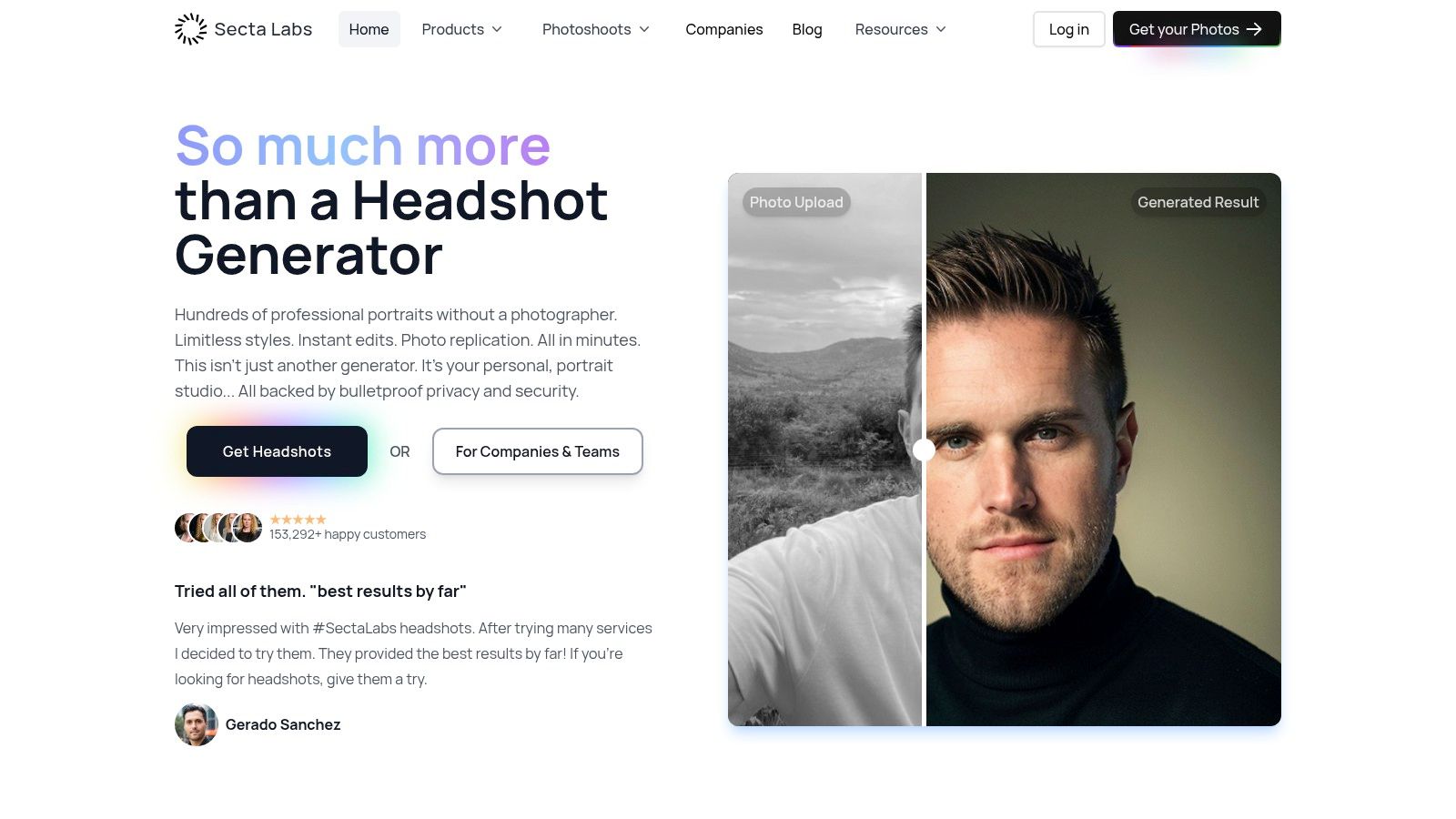 Get stunning AI-generated professional headshots in under an hour. Upload regular selfies or group photos, choose from over 100 styles and we'll create hundreds of perfect shots that represent your best self.