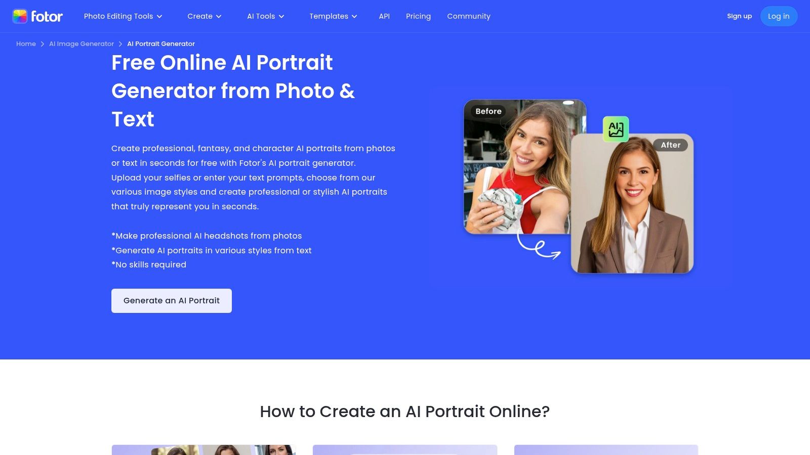 10. Fotor – AI Portrait Generator