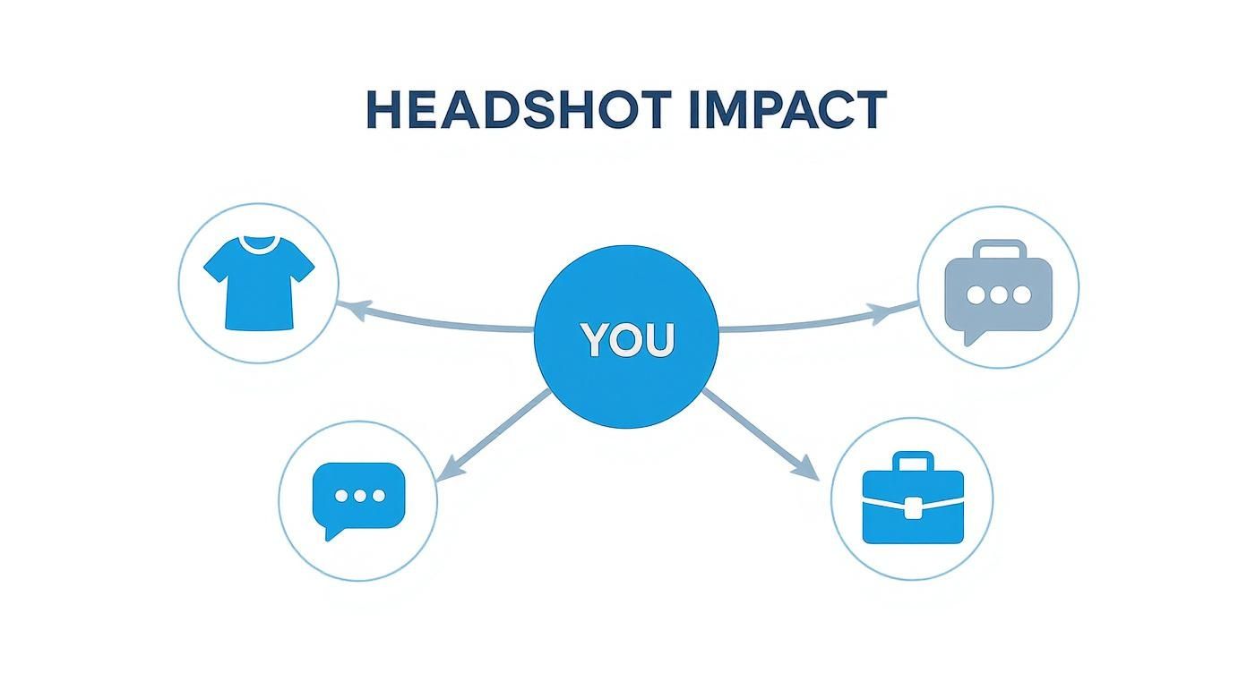 Your headshot outfit isn’t just about looking nice—it's a uniform. It instantly tells people where you belong, what you do, and how seriously you take your work. The right style, whether it’s a razor-sharp suit or a more relaxed, smart-casual look, is a powerful shortcut to making the right first impression.