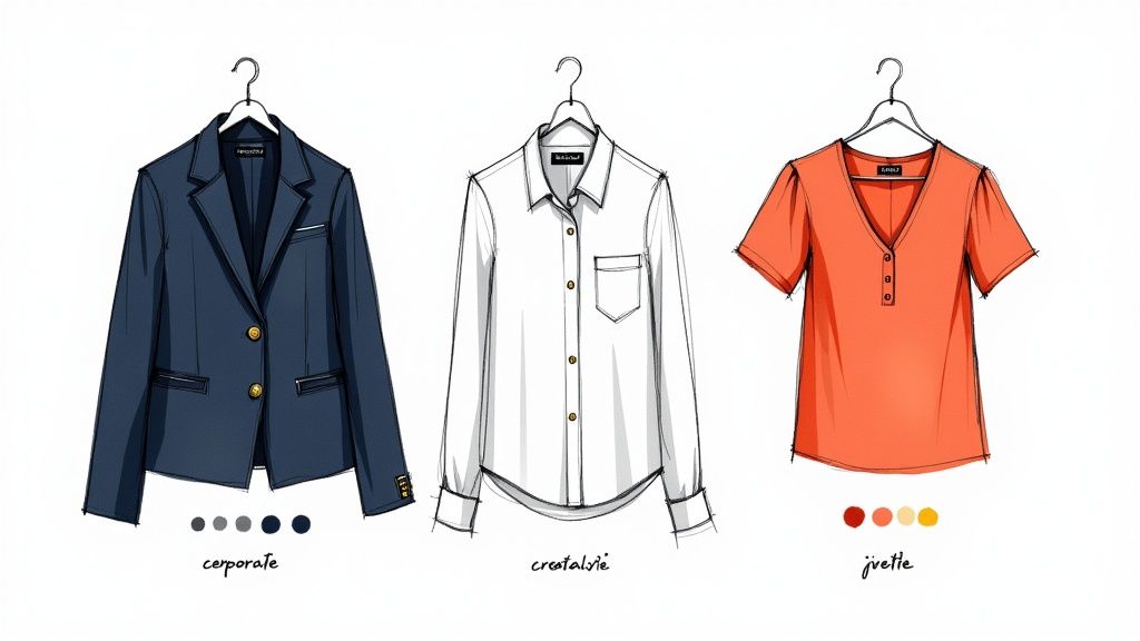 Esto te da una flexibilidad increíble. Puedes generar un clásico retrato corporativo con un blazer oscuro para LinkedIn, y luego crear una segunda versión con un color vibrante y agradable para tu sitio web personal. Toda esa variedad se obtiene a partir de un conjunto de fotos sencillas. Si no tienes claro qué tono elegir, nuestra guía sobre el los mejores colores para los retratos es un gran recurso.