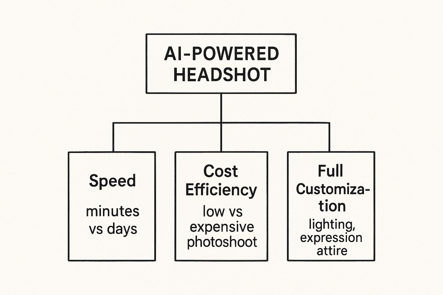 Afortunadamente, esa ya no es la única manera. La IA Generativa ha cambiado por completo el juego, ofreciéndote una forma más rápida, flexible y, francamente, inteligente de conseguir un headshot que funcione para ti. Con nuestra solución, puedes conseguirlo todo de forma más rápida y sencilla.