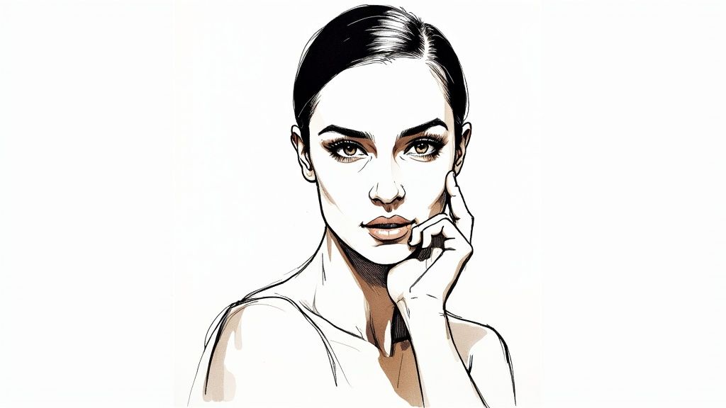 Vervolgens combineer je die stijl met een eenvoudige tekstopdracht. Je hoeft geen roman te schrijven; een paar specifieke woorden volstaan. Een direct verzoek als "professioneel zwart-wit portret, studioverlichting" is bijvoorbeeld alles wat onze AI nodig heeft om een hele galerij met opties te genereren die eruit zien alsof ze door een professional zijn vastgelegd.