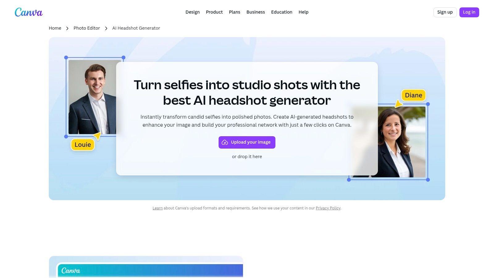Sítio Web: https://www.canva.com/features/ai-headshot-generator/