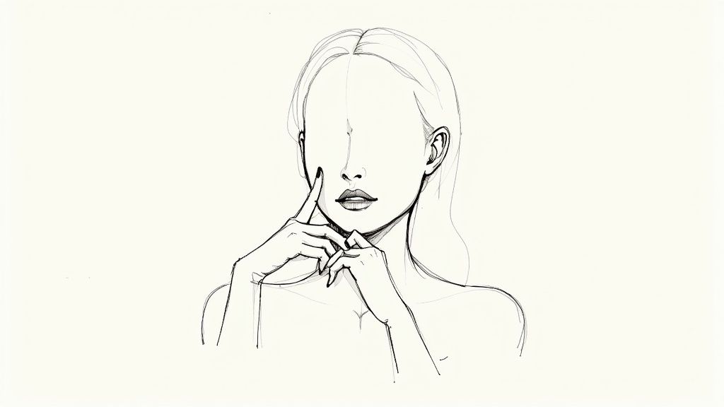 A pose de mãos no enquadramento introduz um elemento humano que acrescenta autenticidade e dimensão a uma fotografia de rosto. Esta abordagem moderna envolve o posicionamento natural de uma ou de ambas as mãos no enquadramento, como tocar suavemente no queixo ou repousar na clavícula. O resultado é um retrato que parece menos encenado e mais como um momento capturado, projectando confiança, consideração e acessibilidade.