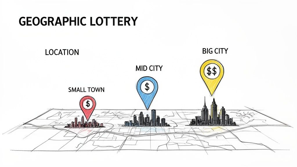 Já reparou como o custo de, bem.., tudo parece mudar consoante o seu código postal? As fotografias de rosto profissionais não são diferentes. No mundo da fotografia tradicional, o local onde se vive desempenha um papel importante no preço que se paga. É uma realidade frustrante a que chamo a "lotaria geográfica".